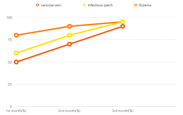 In case of chronic case like varicose vein discolouration 90% skin appearance improved back to normal in 3 months.